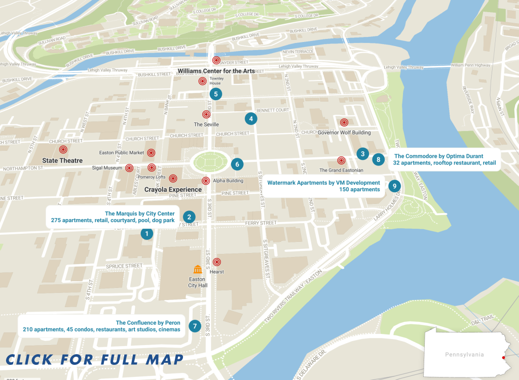 “Easton has undergone an incredible urban renaissance, transforming itself into a hip, little Brooklyn along the Delaware River,” said Don Cunningham, president CEO of Lehigh Valley Economic Development Corporation (LVEDC). “It didn’t happen by accident. The vision and leadership of Mayor [Sal] Panto and his team working with the private sector and Lafayette College has turned Easton into a shining jewel in the crown of the Lehigh Valley’s renaissance.”
