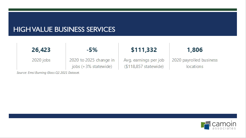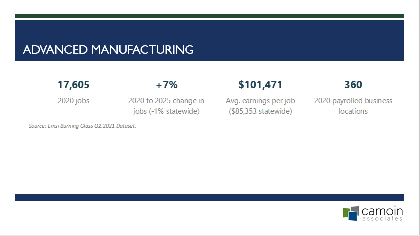 The talent study, conducted by Camoin Associates in partnership with the labor market analytics group EMSI/Burning Glass, is derived from a labor market analysis, survey of local employers, interviews, and focus groups comprising company officials in key industry sectors: advanced manufacturing, life sciences, health care, high value business services, and logistics.