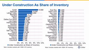 CoStar officials said the highest rates of current under construction activity at over 6% of existing inventory occurred in smaller markets with fast-growing populations and labor markets, like Austin, Texas; Nashville, Tenn.; and the Lehigh Valley. (image courtesy Costar)Lehigh Valley was also singled out in a nationwide 2020 year-in-review provided by Abby Corbett, Managing Director and Senior Economist in CoStar’s Chicago office.