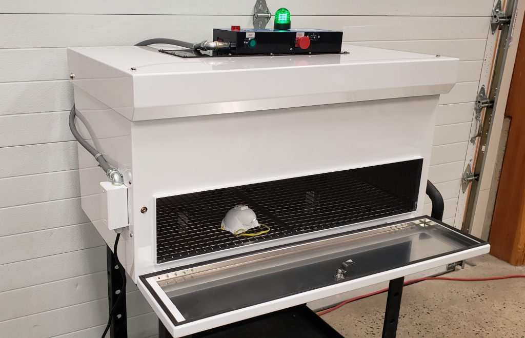 The new product, Aire~PPE DeCon Unit, is a portable, rapid, chemical-free decontamination unit capable of disinfecting more than 8,500 masks per day per unit. Masks can be safely decontaminated up to 20 times, Worrilow said, and ready for safe and immediate use in less than three-and-a-half minutes.