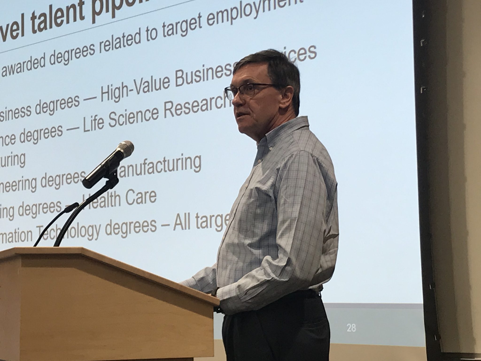 LVEDC President & CEO Don Cunningham speaking to the Education and Talent Supply Council at Northampton Community College in Bethlehem. The Lehigh Valley Economic Development Corporation (LVEDC) Education and Talent Supply Council gathered this week to discuss its accomplishments over the past year, and to look forward to the year ahead.