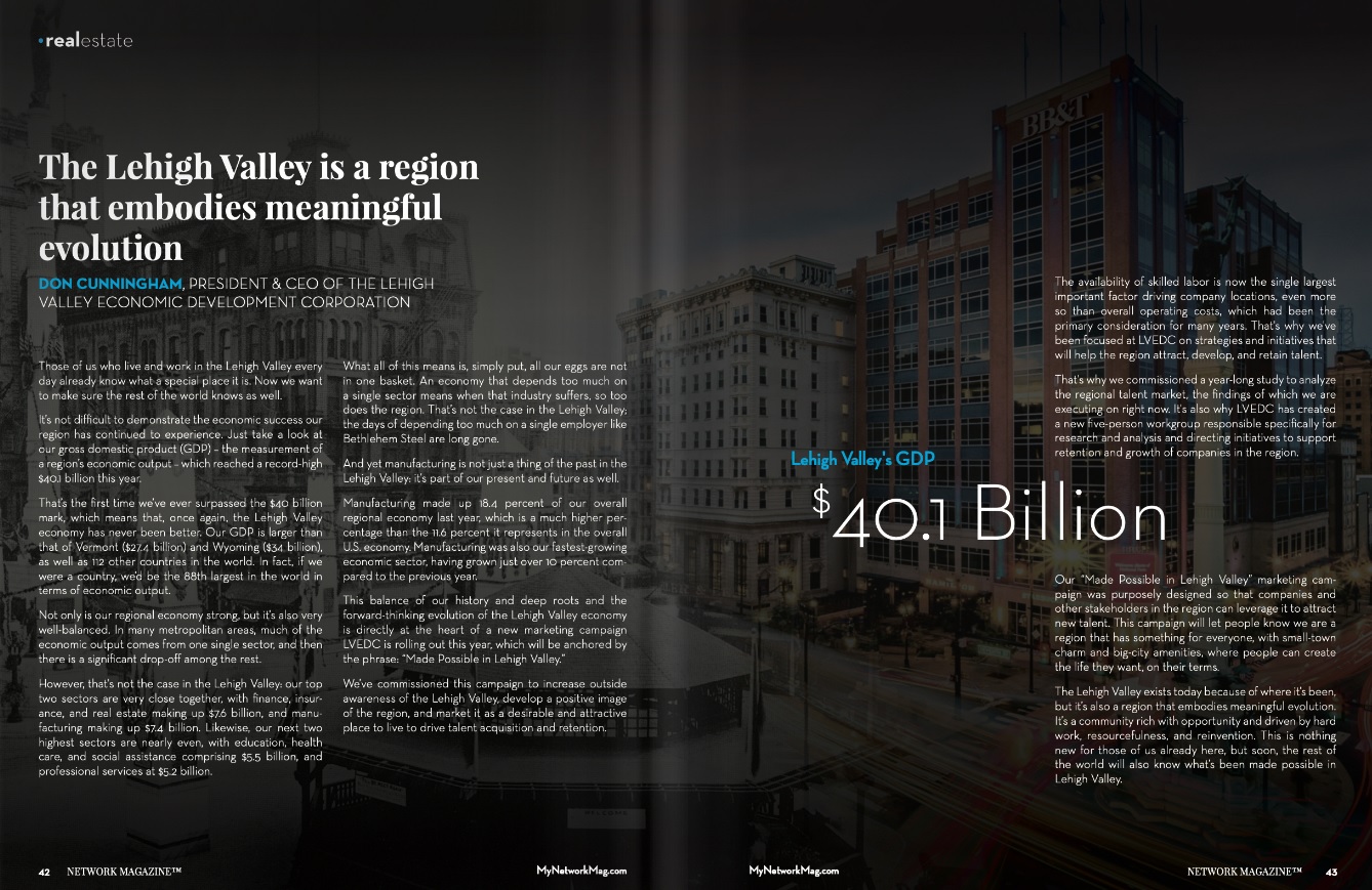This column first appeared in the spring edition of Network Magazine released on April 8, 2019.This column, written by LVEDC President & CEO Don Cunningham, originally appeared in the spring edition of Network Magazine on April 8, 2019. The digital version can be found here. (Click here to read Cunningham’s previous columns.)