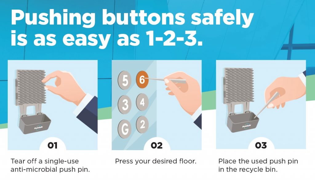 PushSafe is a new product that provides single-use hygienic push pins can be used to press elevator buttons without spreading germs. (image provided by Tyson Daniels)As the nation grapples with quarantines and millions of employees are telecommuting during the COVID-19 pandemic, the Lehigh Valley has a high percentage of essential jobs that cannot be done from home. Each week, we’re recognizing some of our Economic Heroes, the companies and organizations that are continuing to work during these difficult times, helping keep the regional economy strong and doing their part to help fight against the coronavirus.