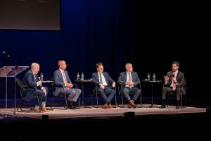 A panel of Lehigh Valley business executives discussed manufacturing at the LVEDC Fall Signature Event, held on Sept. 20 at the State Theatre Center for the Arts in Easton, Pa. (photo by Marco Calderon)LVEDC resumed hosting in-person events in 2022, starting with its annual Fall Signature Event. Held at the State Theatre, this year’s featured panel discussions about the region’s manufacturing successes and the Easton’s transformation, as well as keynote remarks from Crayola President & CEO Rich Wuerthele.