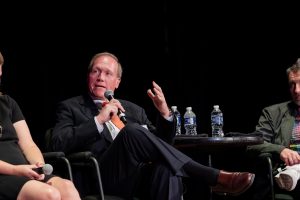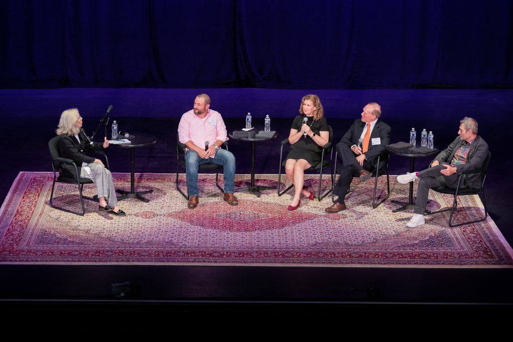 The panel discussion, moderated by State Theatre President & CEO Shelley Brown, included Nicole Hurd, President of Lafayette College; Mark Mulligan of VM Development Group; Mike Pichetto, owner of 3rd & Ferry Fish Market; and Bill Strickland, editorial director of Hearst Enthusiast Group.