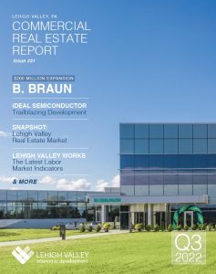 Pages from the Q3 2022 issue of the Lehigh Valley Commercial Real Estate Report.The latest issue of the Lehigh Valley Commercial Real Estate Report has been released, highlighting the growth of the region’s commercial real estate market and the expansion of several manufacturing firms in the Lehigh Valley.