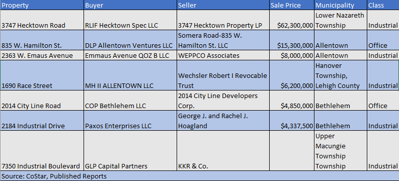 The 763,300 square feet of office construction was driven by Air Products’ new campus in Upper Macungie Township and an office building at The Waterfront project in Allentown.