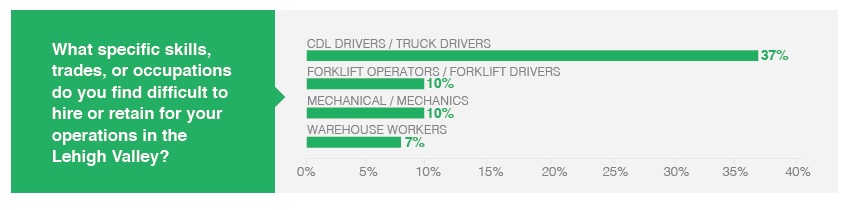 Projections: The transportation, warehousing and logics sector will need to replace 20,978 workers (over 60 percent) in the next five years; a projected 7,825 workers will exit the workforce within the next five years, while another 11,688 are expected to transfer to another industry. This sector is volatile and is forecasted to add another 1,463 workers in the next five years. As the sector becomes more important, there has been a much-publicized driver shortage in trucking seen as part of a larger employee shortage problem facing the entire transportation industry, including the warehouse and logistics sectors. This shortage of trained individuals to replace a rapidly aging workforce in trucking and warehousing may ultimately raise transport and storage costs for shippers.