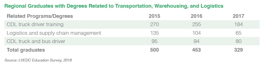 Overview:The rise of e-commerce has increased the importance of the transportation, warehousing and logistics sector. It is the fastest-growing sector in the Lehigh Valley economy, with a 9.5 percent year-over-year growth in economic output, adding 10,000 jobs in the last five years. This is fueled in part by the construction of new fulfillment centers by such companies as Amazon, Walmart, and Zulily. The region’s central location makes us a prime location for companies in this sector, and that is not expected to change absent major changes in technology.