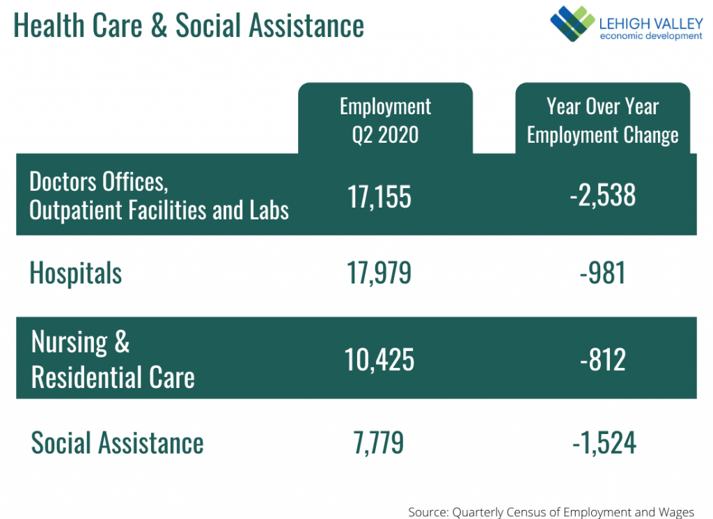 Here’s a look at how the COVID-induced recession impacted key industries in Lehigh Valley during the second quarter: