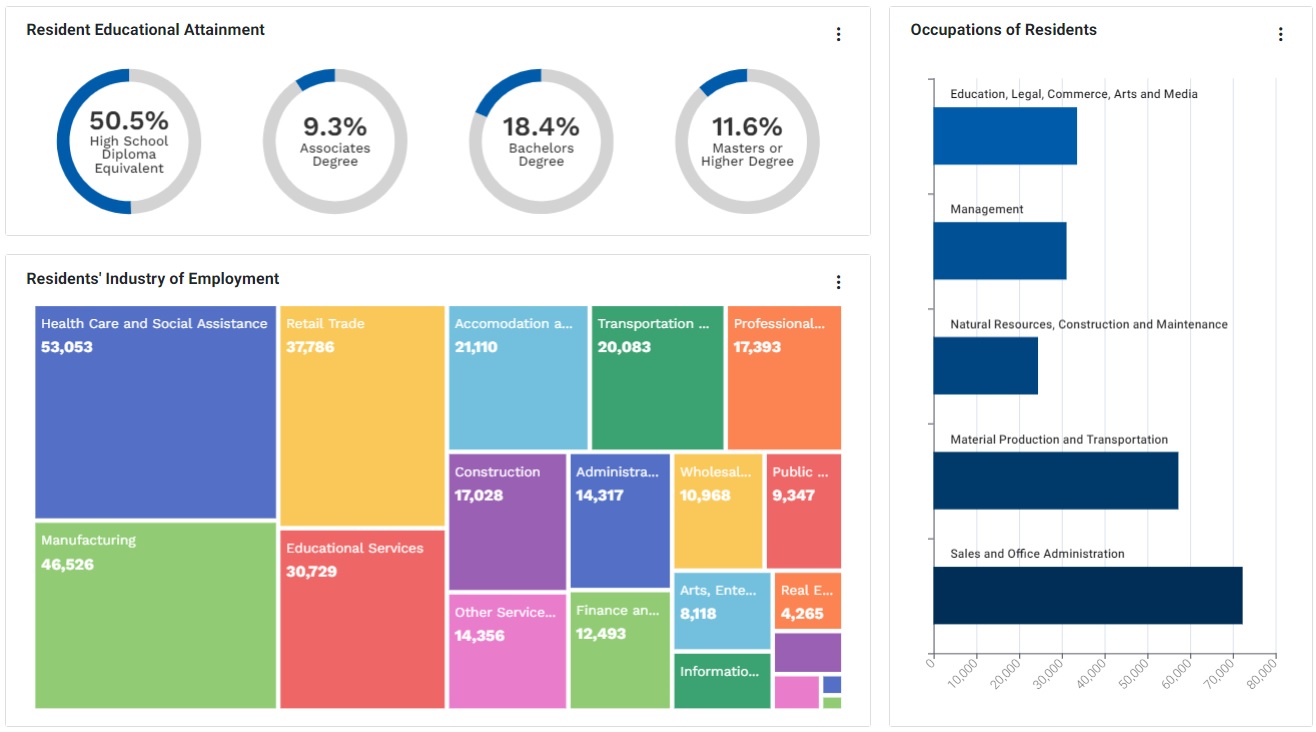 The tools were provided by Local Intel, a firm that specializes in providing economic development organizations with interactive visualizations to promote their region’s economic strengths and location advantages in an engaging and visually-appealing way.