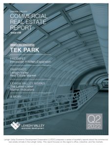 The cover of the Q2 issue of the Lehigh Valley Commercial Real Estate Report.Each quarter the Lehigh Valley Economic Development Corporation (LVEDC) publishes a report that provides a detailed overview of industrial and office market activity and notable commercial real estate transactions in the region. The newest edition covers data from the second quarter of 2022.