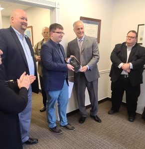 Soltech Solutions co-founders Michael Planer (left) and Paul Hodges (center) accepting the Eastern Pennsylvania Entrepreneurial Success of the Year Award.The U.S. Small Business Administration’s Eastern Pennsylvania District Office has announced its 2022 Small Business Week Award Winners, and two of the winners are based right here in the Lehigh Valley.