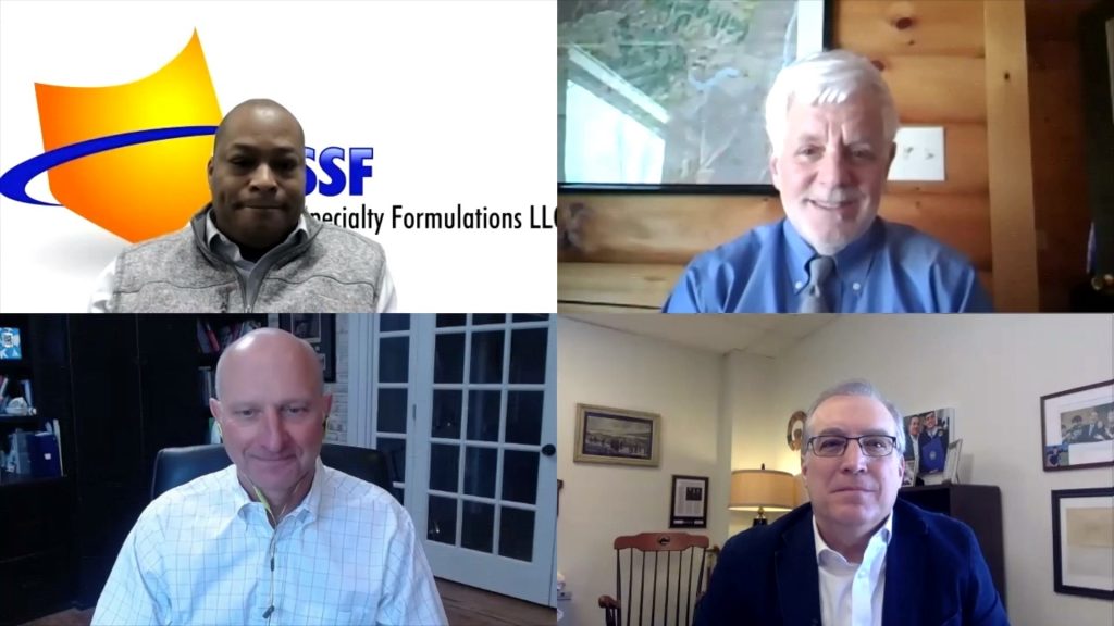 The life sciences panel discussion included (clockwise, from bottom left) Sam Niedbala of CryoConcepts, Kyle Flanigan of U.S. Specialty Formulations, Salvatore J. Salamone of Saladax Biomedical, and LVEDC President & CEO Don Cunningham.Life sciences and medical manufacturing is one of the Lehigh Valley’s most exciting economic sectors, and a growing industry of focus since the coronavirus pandemic began.
