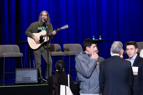 During the networking reception portion of the Fall Signature Event, guests were entertained by musician Sam Houseal, an employee of Martin Guitar who performed on stage.