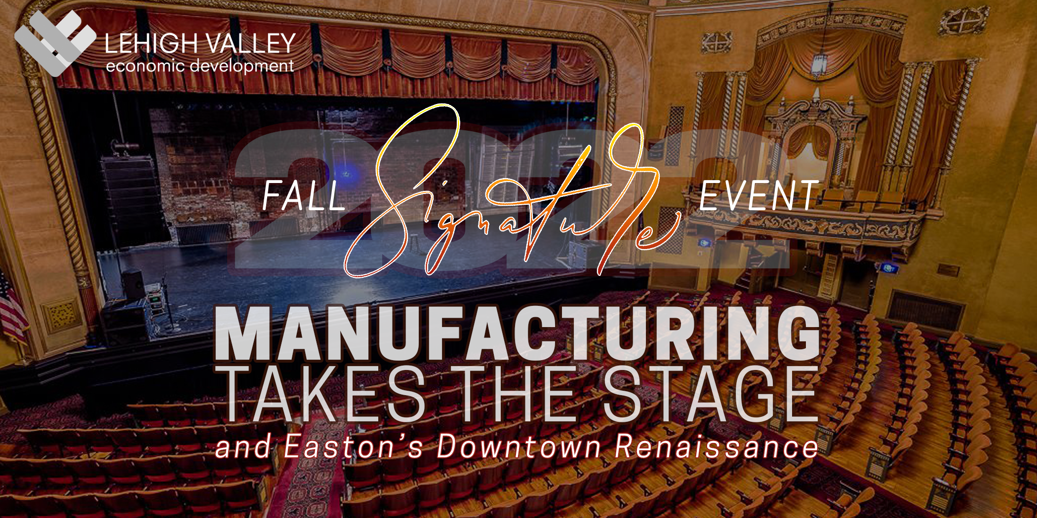 The sixth annual Fall Signature Event will be held on Tuesday, Sept. 20, at the State Theatre Center for the Arts in Easton.Due to strong interest in the Lehigh Valley Economic Development Corporation (LVEDC) Fall Signature Event, we ask that attendees please register by no later than this Friday, Sept. 16.