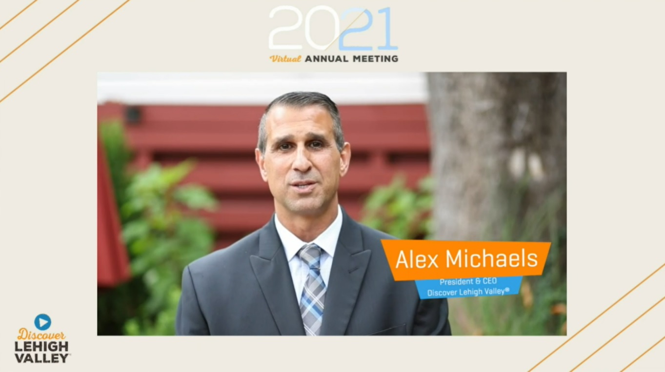 Discover Lehigh Valley President & CEO Alex Michaels spoke at the organizations virtual 2021 Annual Meeting on Nov. 9.The resiliency of the Lehigh Valley was on display during the Discover Lehigh Valley Annual Meeting, which celebrated accomplishments from the past year, highlighted signs of recovery from the COVID-19 crisis, and looked to the future for tourism in the region.