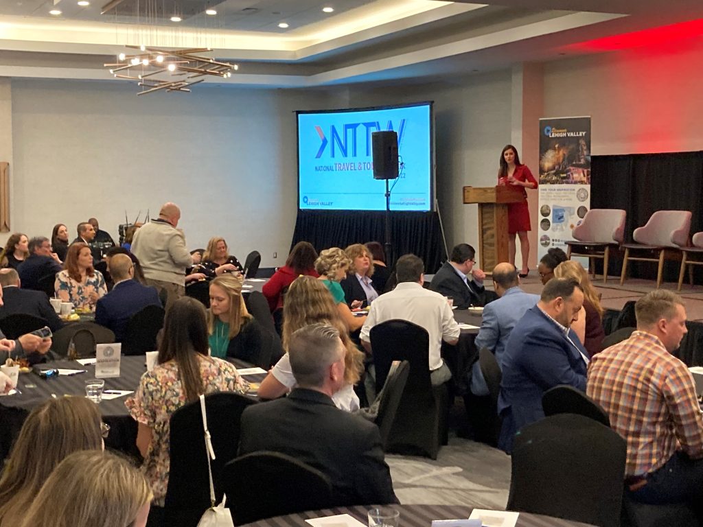 Bree Nidds, Vice President of Sales for Discover Lehigh Valley, speaking at the Lehigh Valley Tourism Perspectives & Insights event.Discover Lehigh Valley celebrated National Travel & Tourism Week by highlighting some key data, travel trends, and tourism initiatives in the Lehigh Valley, as well as a panel of regional representatives in workforce development, transportation, attractions, and outdoor assets.