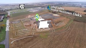 Drone imagery of the planned Lehigh Valley Hospital–Hecktown Oaks campus in Lower Nazareth Township, located off Route 33 along Hecktown Road.Nearly one-third of Northampton County residents already receive health care services from an LVHN provider, Begliomini said. Over the last seven years, the number of visits from Northampton County residents to Lehigh Valley Physician Group providers increased 91%.