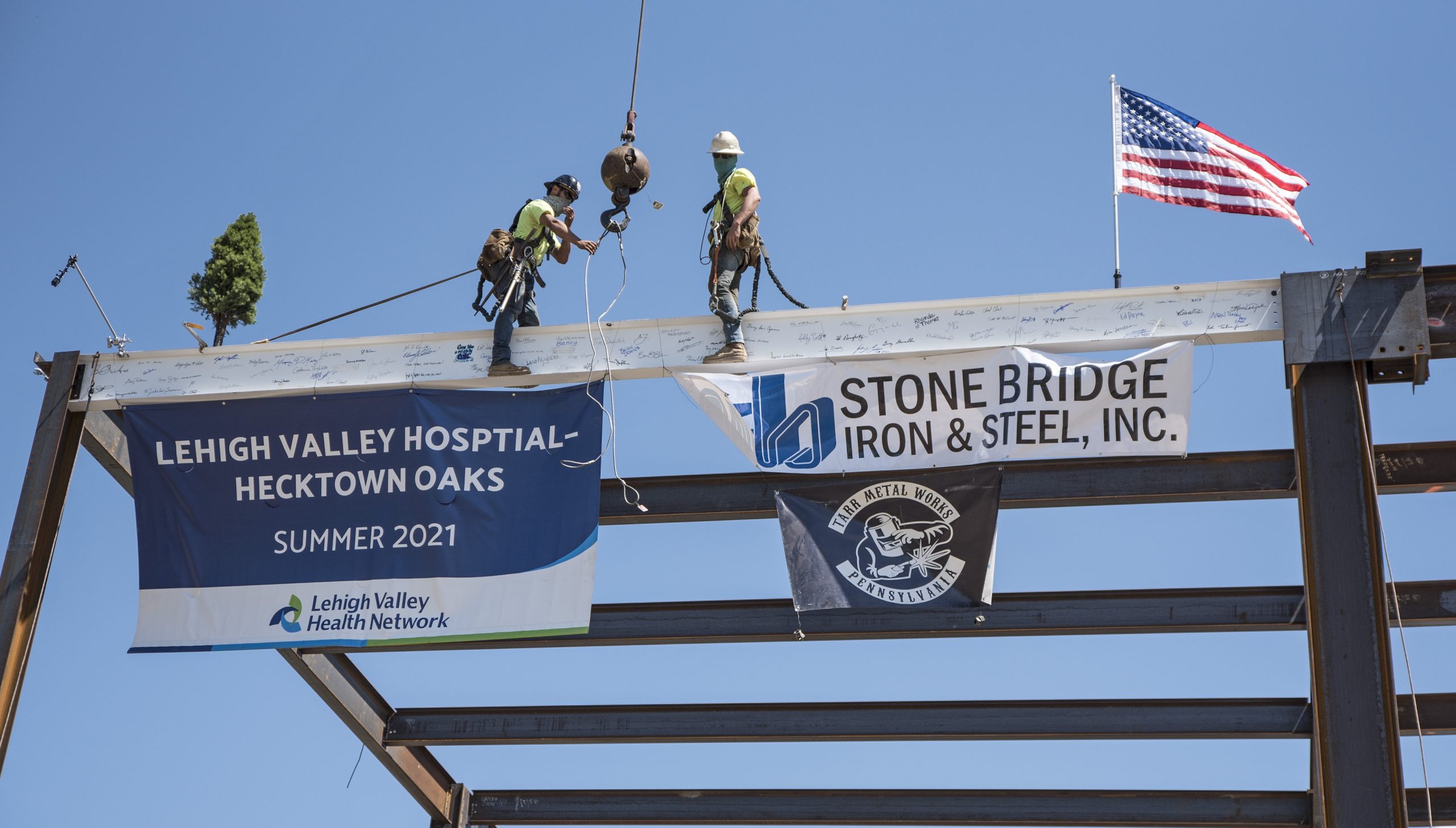 Lehigh Valley Health Network hosted a virtual topping-off ceremony on June 12 to mark the beam placement, with participants able to provide a digital signature that will be included on a large durable vinyl sticker affixed to the beam.
