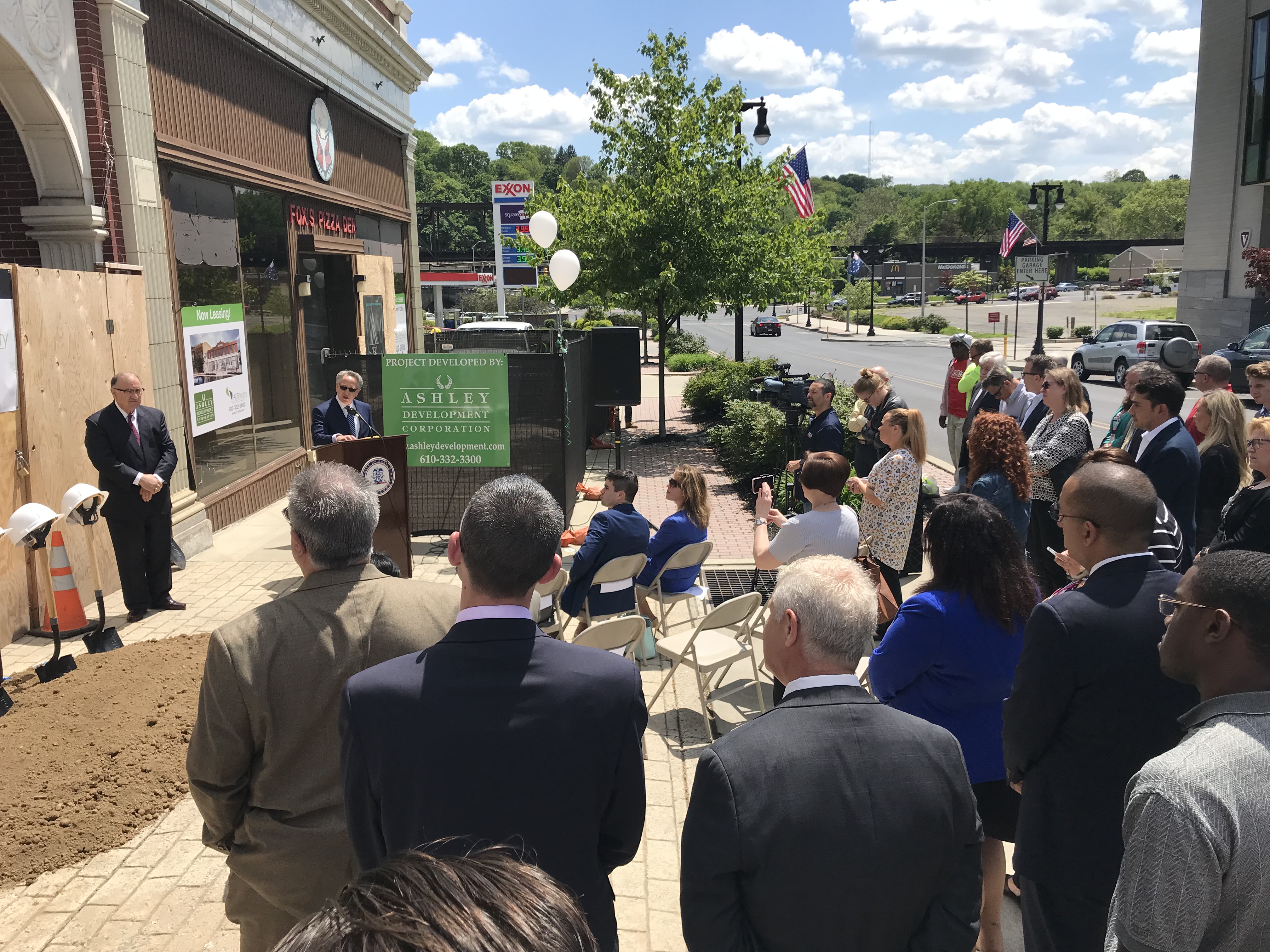 The project is scheduled to be completed in the fourth quarter of 2019, according to Easton Mayor Sal Panto Jr., who spoke to a crowd of more than 100 people at the groundbreaking outside the building, located just across the street from Easton’s City Hall.
