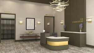 A rendering of the interior lobby of The Commodore project in Easton. (image provided by Optima Durant Group)The 74,000 square-foot Commodore project is expected to be fully complete by early 2023, but will open gradually in stages. The first stage to obtain a Certificate of Occupancy will likely be the retail space, which Vassel said could be as early as this fall. Once this is achieved the retail tenant can start their own buildout.