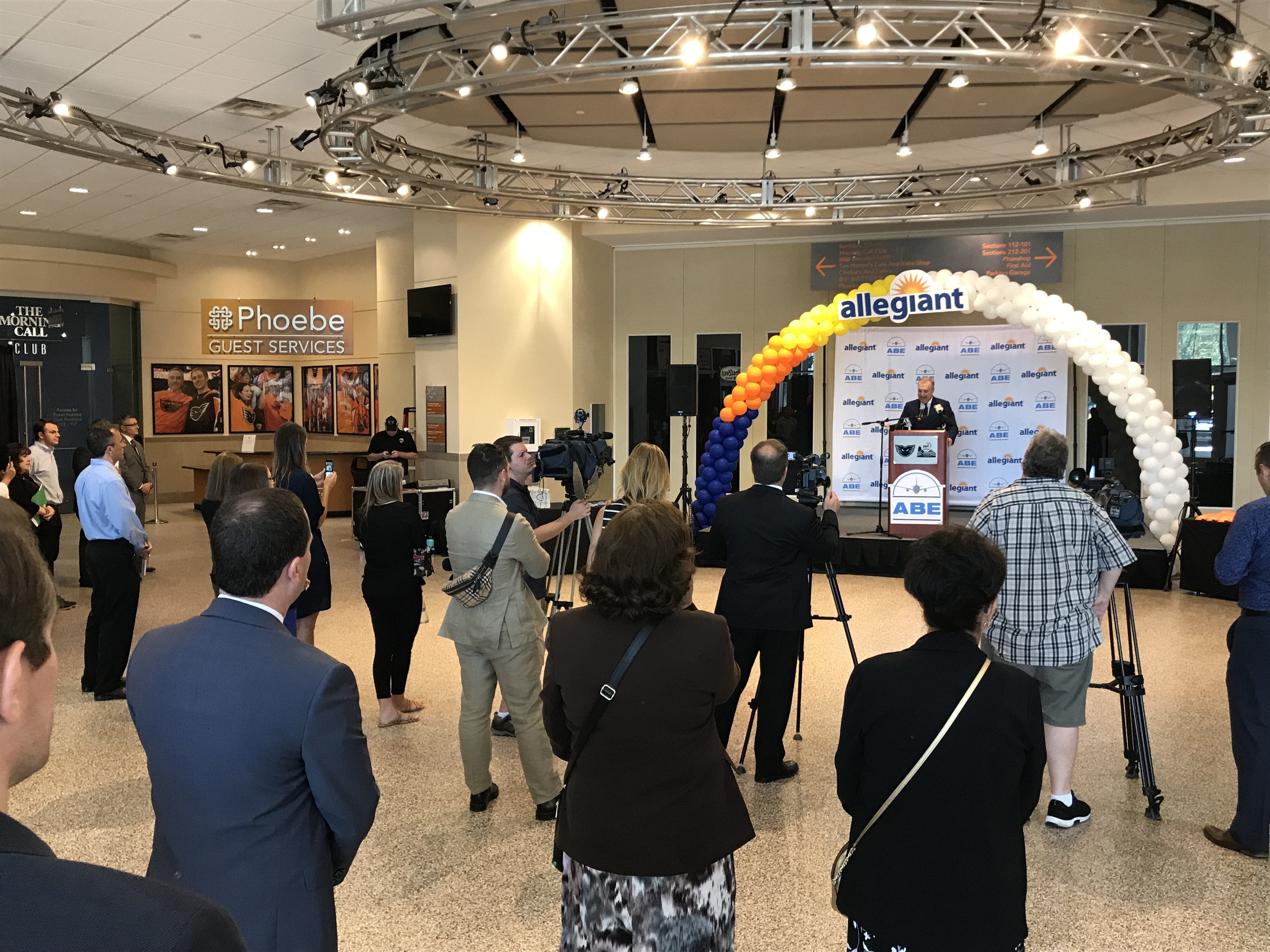 “Excitement is sky high throughout the Lehigh Valley with the news of an Allegiant Crew Base landing at ABE,” said Thomas R. Stoudt, LNAA Executive Director. “Since day one, Allegiant has demonstrated a strong commitment by providing air travelers affordable options and also have supported impactful regional initiatives,” Stoudt said. “Now, they’ve created employment opportunities for this region which makes your neighborhood airport a more critical economic asset.”