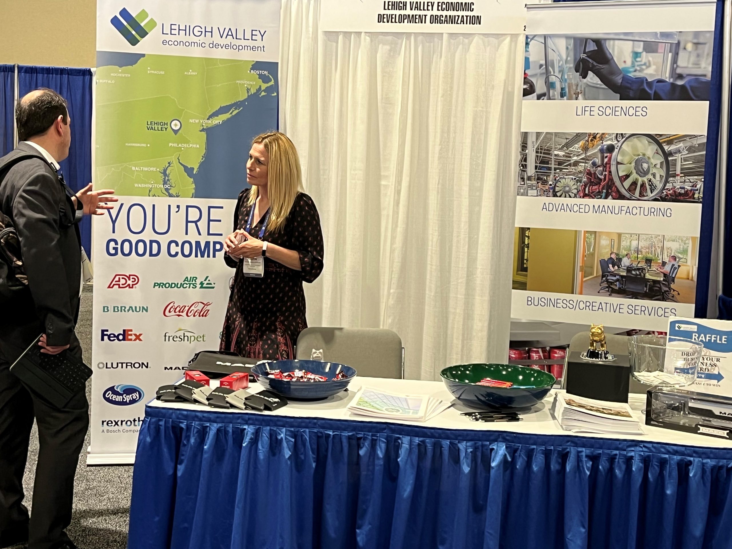 The conversations centered on the Lehigh Valley’s attractive location in the heart of the Northeast market, breadth of talent support provided by the region’s educational institutions, the tax benefits of the Foreign Trade Zone that LVEDC administers and the region’s strength in manufacturing. The Lehigh Valley is among the nation’s top 50 manufacturing markets and home to companies that make iconic products like Crayola crayons and Martin Guitars.