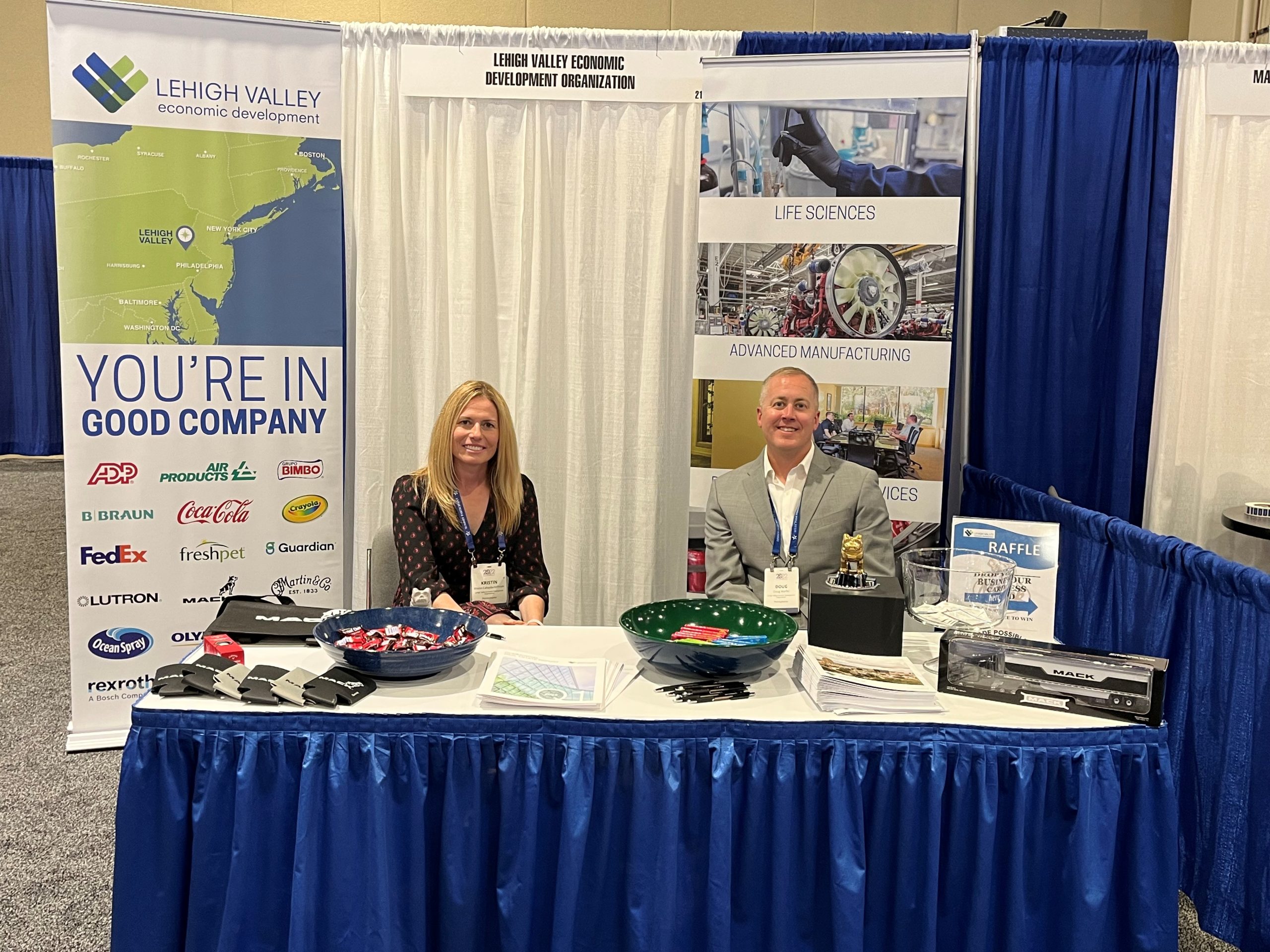 Mack Truck and Just Born donated items for the LVEDC to distribute at the SelectUSA Investment Summit.The prospects were also offered swag from Lehigh Valley companies. Mack Trucks donated a box of company-branded items, including the iconic Bulldog hood ornament and collectible trucks to that were raffled to participants. Just Born donated its popular candies: Peanut Chews, Mike and Ike, and Hot Tamales.