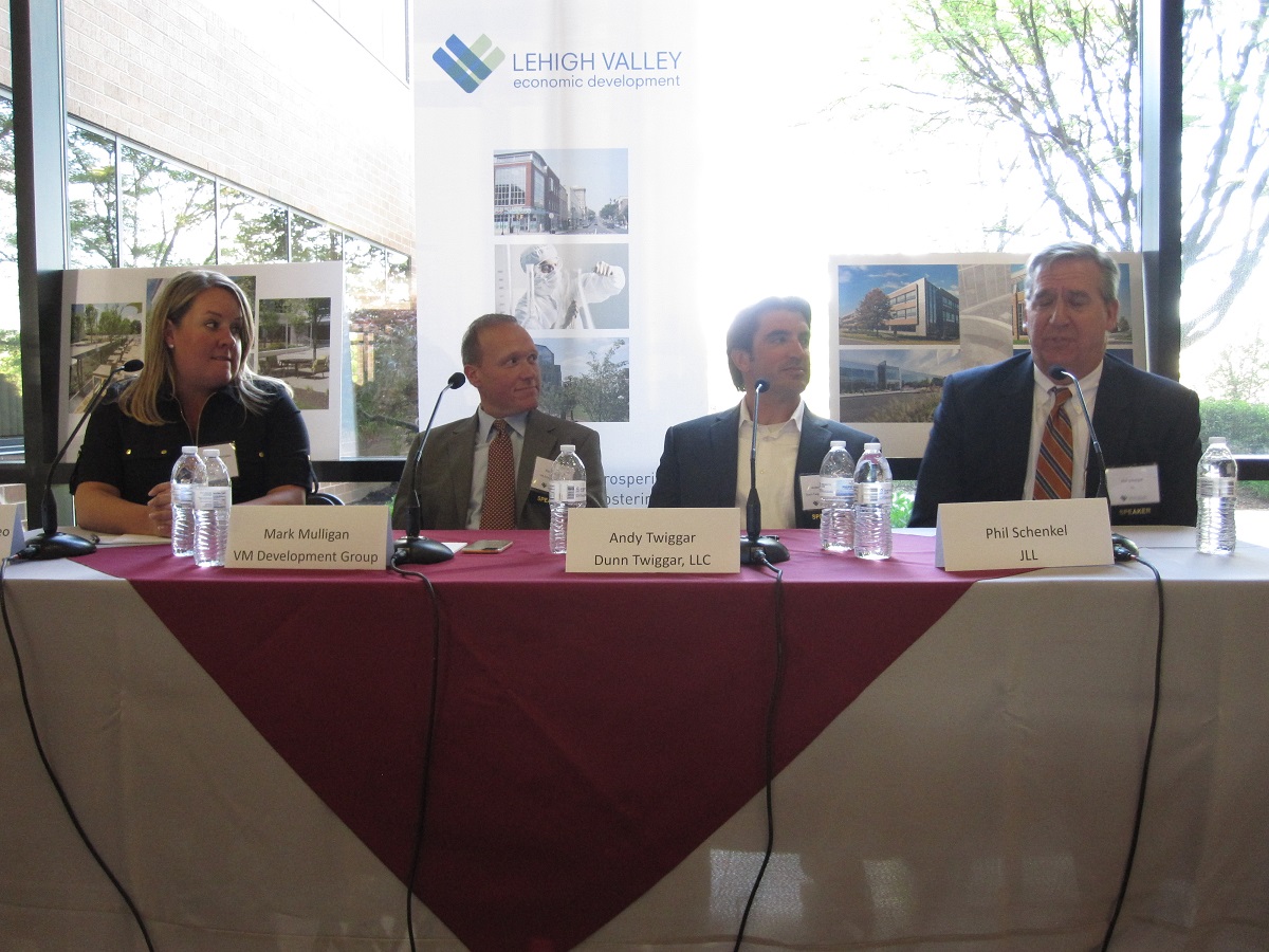 The panelists included Jessica Goffredo-Pantaleo, leasing representative with PennCap Properties; Mark Mulligan, CEO of VM Development Group; Phil Schenkel, vice president with JLL; and Andrew Twiggar, principal and co-founder of Dunn Twiggar.