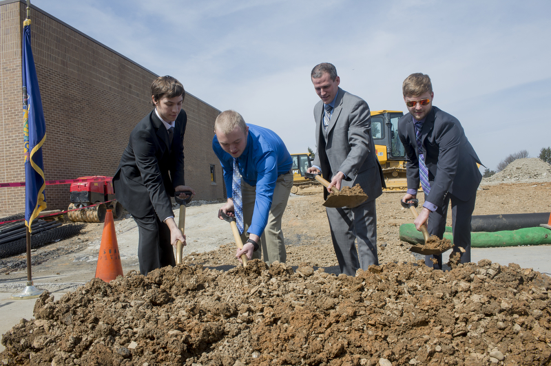 Welding Technology students Jordan Everett (left) and Bradley Gardner (second from left) participate in the ceremonial groundbreaking for LCTI's new Welding Technology Center with their teachers Brad Brandmeir (second from right) and Thomas Uff. (photo courtesy LCTI)The Lehigh Career & Technical Institute (LCTI) celebrated the groundbreaking of a new welding lab this week, a project officials say will provide hands-on training for the Lehigh Valley’s students and provide a pipeline of talented workers for the region’s employers.