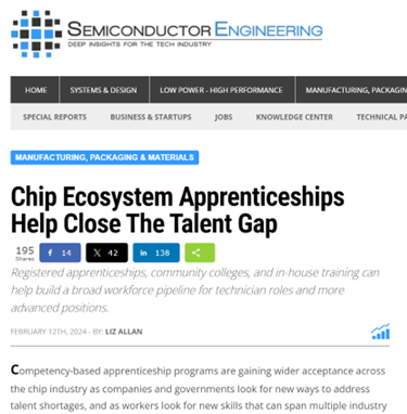 The article by Semiconductor Engineering explored how the industry is trying to build a workforce to support that goal.