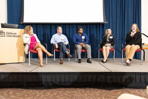 About 100 people attended the event, which was sponsored by DeSales University and Penn Strategies. The event included a keynote address by Shawn VanDerziel, Executive Director of the National Association of Colleges and Employers (NACE), and a panel discussion about how to create meaningful projects for interns.